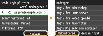 Du kan vælge en destination mellem de tre seneste destinationer. Når du angiver en tidligere brugt destination, anvender maskinen de samme scanningsindstillinger, du brugte sidste gang, du sendte dokumenter til den destination.