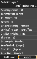 Når du har genkaldt indstillingerne, indstillingskombinationen, kan du også ændre scanningsindstillingerne efter behov.