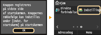 Hvis du vælger <Ja>, vises en meddelelse. Kontroller meddelelsen, og tryk derefter på <OK>. Den registrerede indstillingskombination tilføjes til Hjem-skærmen som en genvejsknap.
