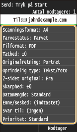 Du kan få flere oplysninger om at redigere eller slette registrerede indstillinger under <Scan>  <E-mail>/<I-fax>/<Fil>  <Favoritindstillinger>  <Rediger/slet>  <Rediger> eller <Slet>, og følg derefter trinnene nedenfor.
