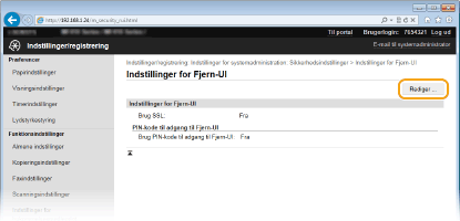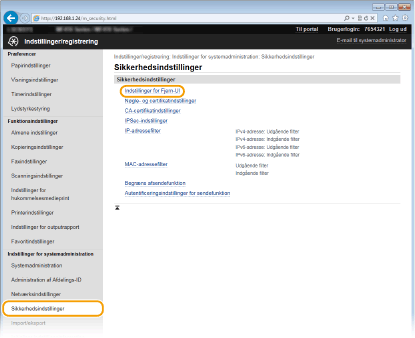 Tryk på [Sikkerhedsindstillinger]  [Indstillinger for Fjern-UI].