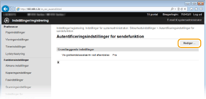 Viser godkendelsesskærmen med det samme brugernavn og den samme adgangskode, der er indtastet på logonskærmen for Autoriseret afsendelse.