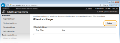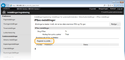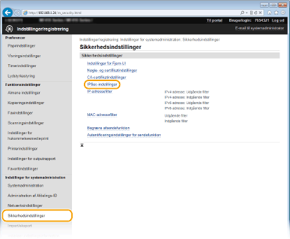 Klik på [Sikkerhedsindstillinger]  [IPSec-indstillinger].