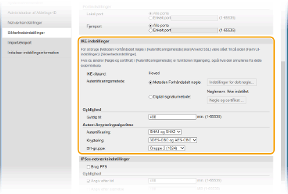Angiv indstillingerne [Gyldig til] og [Autentificering]/[Kryptering]/[DH-gruppe].