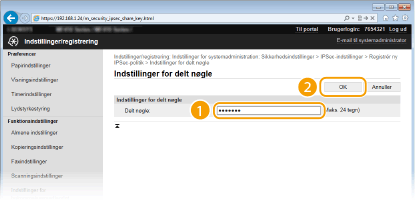 Angiv op til 24 alfanumeriske tegn for den forhåndsdelte nøgle, og klik på [OK].