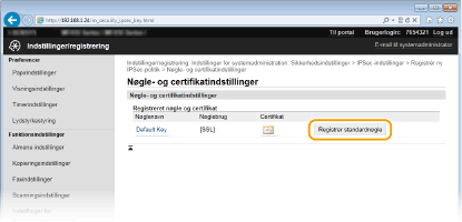 Klik på [Registrer standardnøgle] til højre for et nøglepar, du vil bruge.