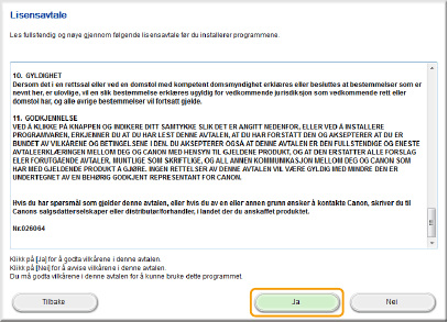 Les lisensavtalen og klikk på [Ja] for å godta.