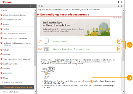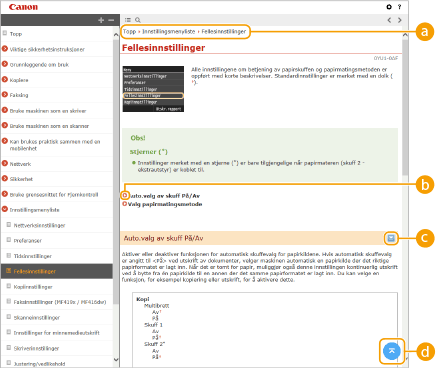 Klikk for å vise informasjon om hvordan du viser e-håndbok, hvordan du søker og annen informasjon.