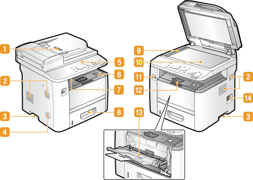 Luft fra innsiden av maskinen slippes ut for å kjøle ned innsiden av maskinen. Legg merke til at du kan blokkere ventilasjonen dersom du plasserer gjenstander foran ventilasjonsåpningene.