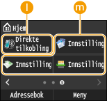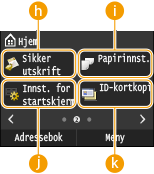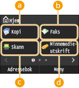 SnarveisknapperVis "Favorittinnstillinger" som er lagret for Kopi, Faks og Skann. Legge til knapper til Hjem-skjermbildet