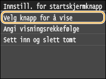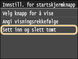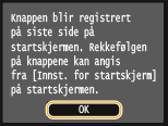 Hvis Hjem-skjermbildet er fullt og det ikke er mulig å lagre flere innstillinger, slett lagrede knapper og tomrom i <Innst. for startskjerm>.