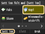 Du kan legge til snarveisknapper til Hjem-skjermbildet for ofte brukte funksjoner som <Kopi>, <Faks> og <Skann>. For eksempel kan du utføre oppgaver raskere og mer effektivt ved å tilordne en serie med innstillinger (f.eks. "Skann begge sider av et dokument, lagre det som en PDF-fil med høy komprimering og send det via e-post") til én enkel knapp.