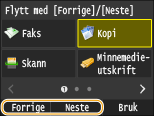 Ved å holde inne <Forrige>/<Neste> flyttes knappen kontinuerlig.
