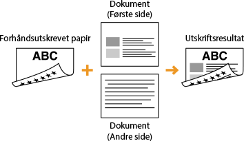 Når du skriver ut på ferdigtrykt papir, må du endre hvilken side av papiret som vender opp, hver gang du skifter mellom enkeltsidig og dobbeltsidig utskrift. Hvis imidlertid <Valg papirmatingsmetode> er angitt til <Utskriftssideprioritet>, kan siden som er vendt opp når du legger inn forhåndstrykt papir for dobbeltsidig utskrift (logosiden vendt opp for papirskuffen eller ned for flerfunksjonsskuffen), også brukes for enkeltsidig utskrift. Denne innstillingen er spesielt nyttig hvis du ofte utfører både enkeltsidig og dobbeltsidig utskrift. Valg papirmatingsmetode