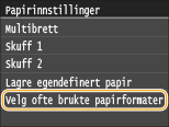 Du sørge for at bare papirformater som brukes ofte, vises på skjermbildet for å velge papirformat.