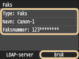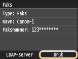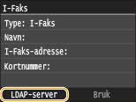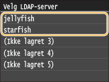 ![]() Hvis godkjenningsskjermbildet vises når du trykker på <Start søk>, angir du brukernavnet for maskinen og passordet som er registrert på LDAP-serveren, og trykker på <Bruk>. Registrere LDAP-servere