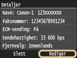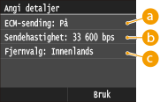 Angi detaljerte innstillinger (bare når registrert for faks)