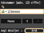 Skriv inn søkestrengen ved bruk av talltastene og trykk på <Bruk>.