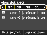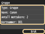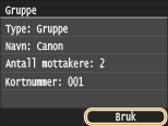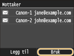Gjenta trinn 7 til 9 til du har registrert alle mottakere som du vil registrere, og trykk deretter på <Bruk>.