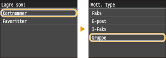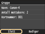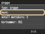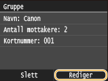 Flere mottakere kan settes sammen i grupper. Du kan registrere opptil 299 mottakere (100 mottakere for e-post) for en gruppe. Etter at en gruppe er registrert, kan du redigere eller slette den.