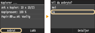 Trykk på <Avbryt> på skjermbildet som vises under kopiering