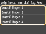 Hvis du vil redigere lagrede innstillinger, velger du innstillingskombinasjonen som skal redigeres i trinn 3 og redigerer deretter innstillingene.
