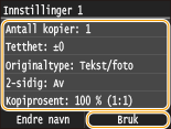 Etter at du har hentet innstillingskombinasjonen kan du også endre kopiinnstillingene etter behov.