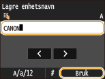 Angi enhetsnavnet (som et brukernavn eller firmanavn) ved bruk av talltastene og trykk på <Bruk>.