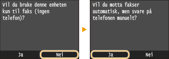 Trykk på <Ja> eller <Nei> for å velge mottaksmodus.