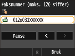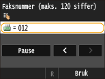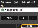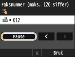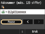 Velg <Pause> for å sette inn en pause ved slutten av faksnummeret om nødvendig.