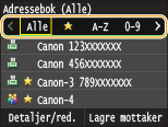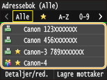 Adresseboken lar deg spesifisere en mottaker ved å velge fra en liste over registrerte mottakere eller ved å søke etter navn på mottakere.