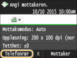 Hvis en ekstern telefon eller telefonrøret (ekstrautstyr) er koblet til maskinen, kan du løfte av telefonrøret i stedet for å trykke på <Telefonrør>.