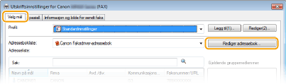 Når du registrerer ofte brukte mottakere for PC-fakser i adresseboken, kan du enkelt spesifisere mottakere når enn du sender PC-fakser. Adressebokdata i CSV-format som er opprettet på programmer som Microsoft Excel kan også importeres inn i maskinen, eller adressebokdata kan eksporteres til en fil for bruk på andre faksmaskiner eller programmer.