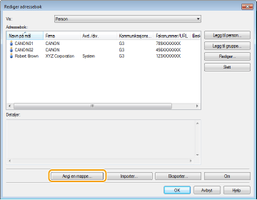 Plasseringen for lagring av adressebokdata kan endres til en vilkårlig mappe. Du kan ikke bruke adresseboken hvis du ikke har tilgangsrettigheter til mappen der adresseboken er lagret. I så fall, må du endre lagringsplasseringen for adresseboken.