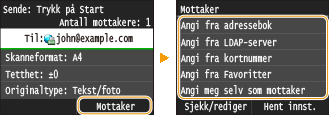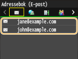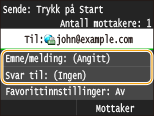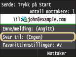 ![]() ![]() Svar-til-adressene som kan angis er alltid en av e-postadressene som er registrert i adresseboken.