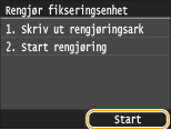 Rengjøringen starter. Når meldingen <Ferdig.> vises omtrent 60 minutter senere, trykker du på
