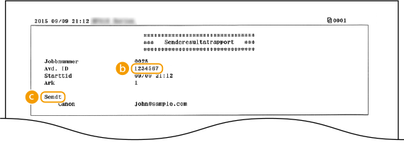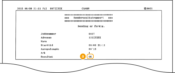 <Resultatrapport for fakssending> eller <Resultatrapport for e-post-/I-Faks-/filsending>