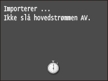 Importen starter. Maskinen starter på nytt automatisk etter at importen er fullført.