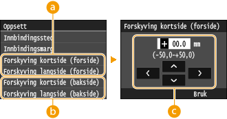 <Forskyving kortside (bakside)>/<Forskyving langside (bakside)>