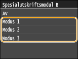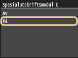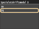 Hvis problemet ikke kan løses til tross for at elementet er angitt, må du sette <Spesialutskriftsmodul D> på <På>. Spesialutskriftsmodul D