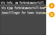 <Vis informasjon om forbruksmateriell (RUI / Toner Status)>