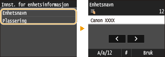 Tast inn opptil 32 alfanumeriske tegn for navnet og installasjonsplasseringen for å identifisere maskinen.