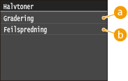 Ved utskrift av JPEG- og TIFF-bildefiler med AirPrint, kan du endre utskriftsinnstilling når det gjelder å velge utskriftsmetode for å gjengi halvtoner (området mellom de lysere og mørkere områdene i et bilde) for optimal bildekvalitet. Standardinnstillingen fra fabrikk er <Gradering>.