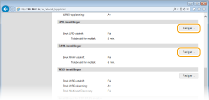 Klikk på [Rediger] i [LPD-innstillinger] eller [RAW-innstillinger].
