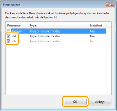![]() Velg flere drivere fra følgende, i henhold til operativsystemet på utskriftsserveren.