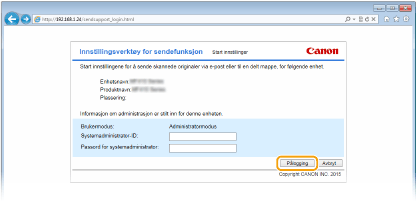 Innstillingsverktøy for sendefunksjon hjelper deg med å konfigurere grunnleggende innstillinger for å sende e-post. I stedet for Innstillingsverktøy for sendefunksjon, kan du bruke Fjernkontroll til å konfigurere mer detaljerte innstillinger, som innstillinger for POP-autentisering før sending eller for kryptert kommunikasjon. Konfigurere kommunikasjonsinnstillinger for e-post/I-faks