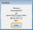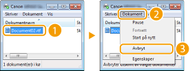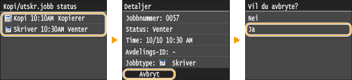 Avbryte fra FjernkontrollDu kan avbryte utskriften fra siden [Jobbstatus] i Fjernkontroll: Kontrollere gjeldende status for utskriftsdokumenter