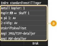 . Hvis du endrer disse standardinnstillingene til å passe med operasjonene som du utfører ofte, kan du fjerne behovet for å spesifisere de samme innstillingene hver gang du lager utskrifter.