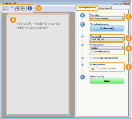 på skjermen, og klikk på [Skann]. Ved å gjøre dette kan du konfigurere enkle innstillinger og skanne.