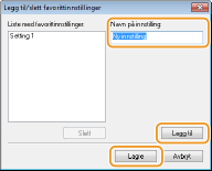 Skriv et navn inn i [Navn på innstilling] og klikk på [Legg til]